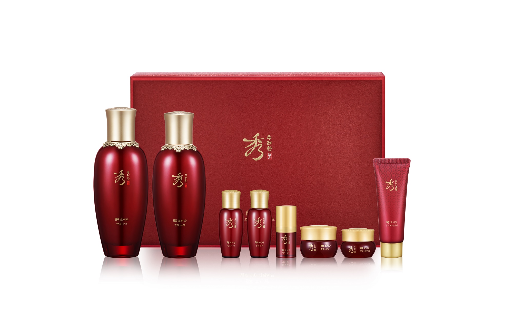 加赠一套秀雅韩酵滋养焕颜系列5件套非卖品(60ml)(焕颜液20ml、焕颜乳20ml、焕颜精华5ml、焕颜眼霜5ml、焕颜面霜10ml),一套秀雅韩天参雪润系列2件套非卖品(30ml)(天参雪润亮肤水15ml、天参雪润亮肤乳15ml)