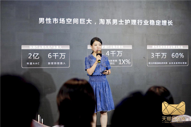 “我们需要一款现象级的产品告诉男人们到底应该怎么做护理”,她指出,男士护理行业还具有非常大的渗透空间,天猫将和商家一起打造出这个时代的“大宝”, 一起打出男士护理的用户心智。