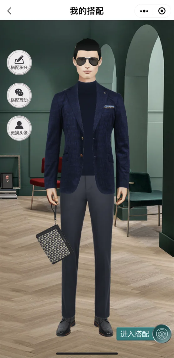 点击人物即可查看每件单品细节及其货号、价格,方便精准获得衣物信息。这款单西通体为深邃的藏蓝色,并融入不同颜色的变形logo设计,若隐若现彰显高级质感。棕色纽扣撞色点缀,既低调大方又不失时髦品位。小号老花提包、墨镜以及黑色亮面皮鞋的鞋包配饰组合,打造都市时尚精英氛围感,照搬整套搭配绝不出错。