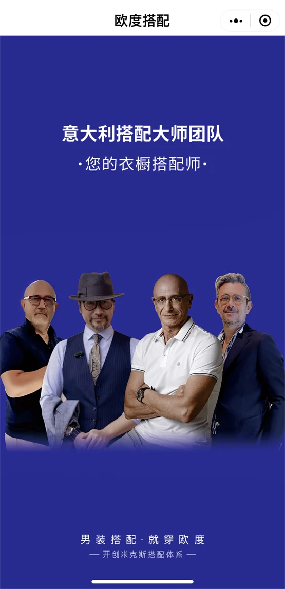 佛靠金装,人靠衣装;一个人的外在形象,永远是社交场合的第一张名片。得体的穿搭,对社交和事业都非常加分。作为专注搭配24年的高端男装品牌,欧度始终致力于提升男士穿衣品味和外在形象,从开发米克斯搭配体系到组建国际化意大利搭配大师团队,精准服务于经常为穿搭烦恼,又有场合形象需求的男士。