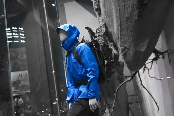 延续始祖鸟品牌一贯的环保理念,使用PLA可降解材料,严苛执行有效减少碳排放的标准要求,践行守护未来的环境友好型橱窗。