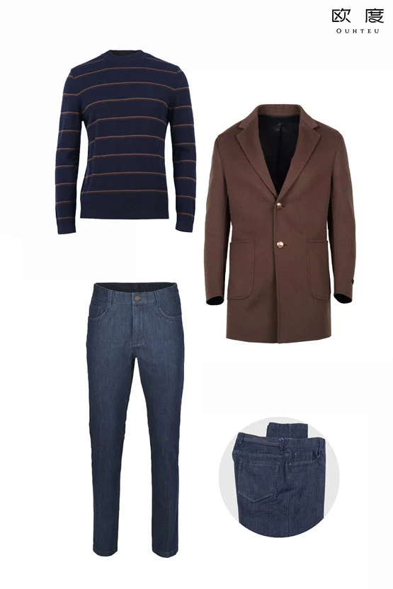 欧度冬季款焦糖色塑型羊毛大衣,无论是做工线迹还是面料质感都相当高级。合体宽松版型确保舒适和风度,两粒金色纽扣设计彰显轻奢细节;内搭雪山羊绒材质的深海蓝条纹毛衣,上身精致柔软细腻保暖。直筒牛仔裤与大衣搭配,举手投足间稳重优雅不失率性。