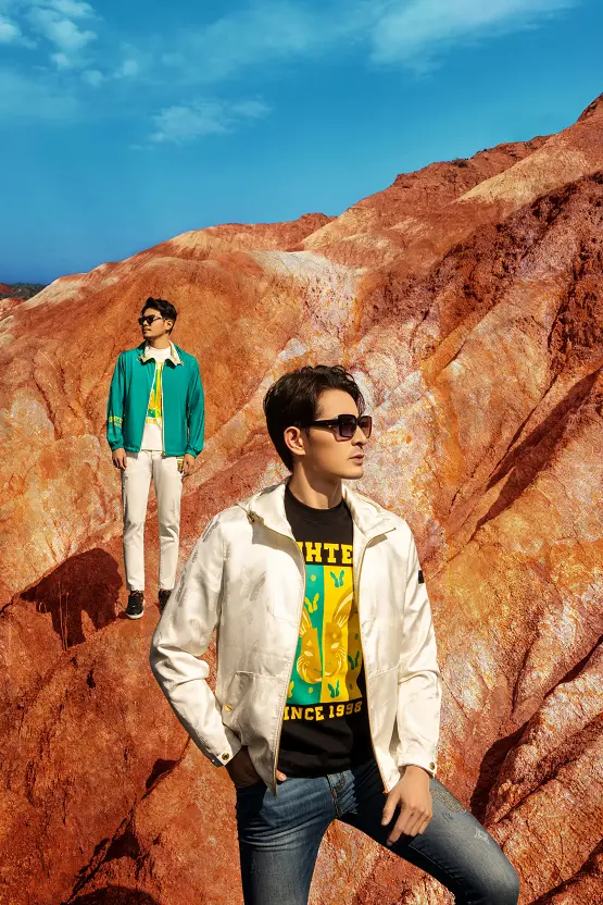 精心筛选的黑、白、黄、青绿色调,不仅符合当前市场消费者的色彩偏好,其丰富饱和、清雅爽朗的视觉色感,还直观演绎了春季穿搭的舒适轻盈。再配合利落流畅的服饰廓形,最终呈现出穿着者干练摩登、个性十足的风格气质,表达着当代男士自信乐观、积极向上的生活态度。
