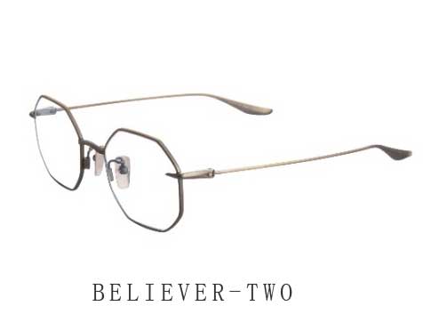 BELIEVER灵感取自美式复古豪华轿车,细致简约的钛金属线条勾勒出六角形镜框,镜腿前侧缀以金属箭头,镜腿脚以双色羽毛粉饰,镜框分别以哑金、枪色及古铜色提升复刻味道,混合优雅奢华的韵味,又不失时尚型格。