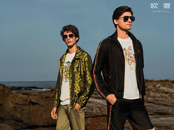 在新一季春季系列搭配中,巴蜀文化艺术代表色彩以不同深浅色调的搭配,呈现于茄克、卫衣以及配饰等单品之上。标志性欧度品牌LOGO变型元素以经典老花形式贯穿服饰与配饰;几何图案、浪漫花卉、黑金飞豹则以印花或刺绣趣味点缀成衣。“红、黄、青、白、黑”不同色调间的融合碰撞,“瑞龙图案、欧度双T图案”精致繁复与简约主义的巧妙相遇,都淋漓地展现出浓郁的巴蜀美学艺术韵味和现代时装审美魅力。可以发现,欧度2024春季系列凝聚着巴蜀文化艺术的智慧印记,每套搭配都在传递着服饰的本源魅力,创意探索着现代男装的多元风格。