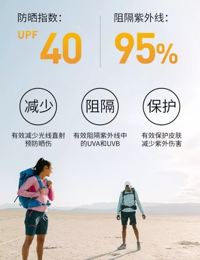 运用高密度织布结构、奥米紫外线反射及吸收技术,哥伦比亚服饰可以有效阻隔太阳的有害射线,让消费者享受更长时间的户外时光,业已获得皮肤癌基金会推荐!