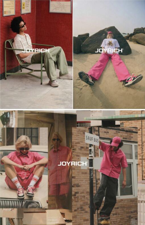 除此之外,JOYRICH以重磅面料和鲜艳色彩为主导,注入丰富印花和水洗处理,带来充满活力的夏季单品。从复古水洗牛仔裤、气球工装裤到镂空开领衬衫、牛仔廓形衬衫等,带来一整组街头造型必备的百搭单品。同时JOYRICH也为街头女生打造了专属夏日造型系列,包括短款正肩Tee、高腰打底衫、运动背心等,通过撞色和剪裁描绘出一番生动的夏日景象。