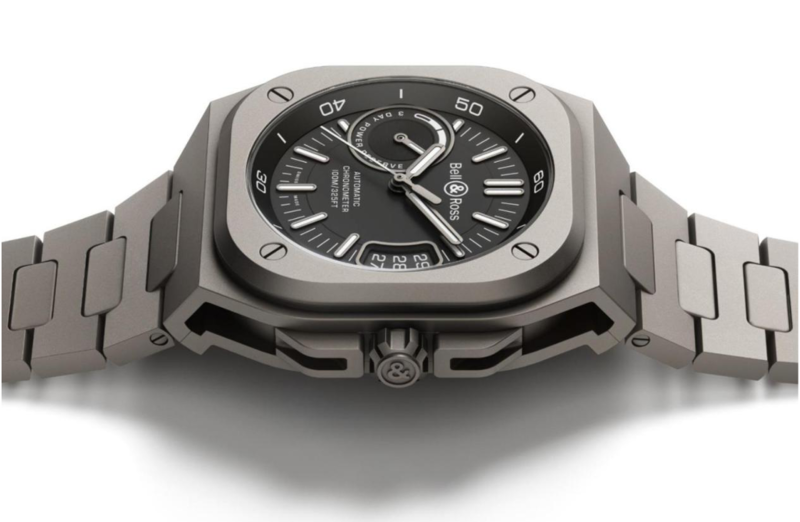 BR-X5系列代表Bell & Ross兼容独特风格及卓越性能的新里程,品牌创意总监兼联合创办人Bruno Belamich强调:「BR-X5装配品牌自制机芯,设计精巧严密,是品牌时计风格及制表技术新一代经典之作。」Bell & Ross一向重视时计功能,这新作的表盘布局及时标清楚易读,3时位置设大日历,9时位置为动力储备显示,时标与时针及分针经SLN X1白色夜光涂层处理,无论日夜皆清楚显示。边缘斜面有分钟刻度标记。